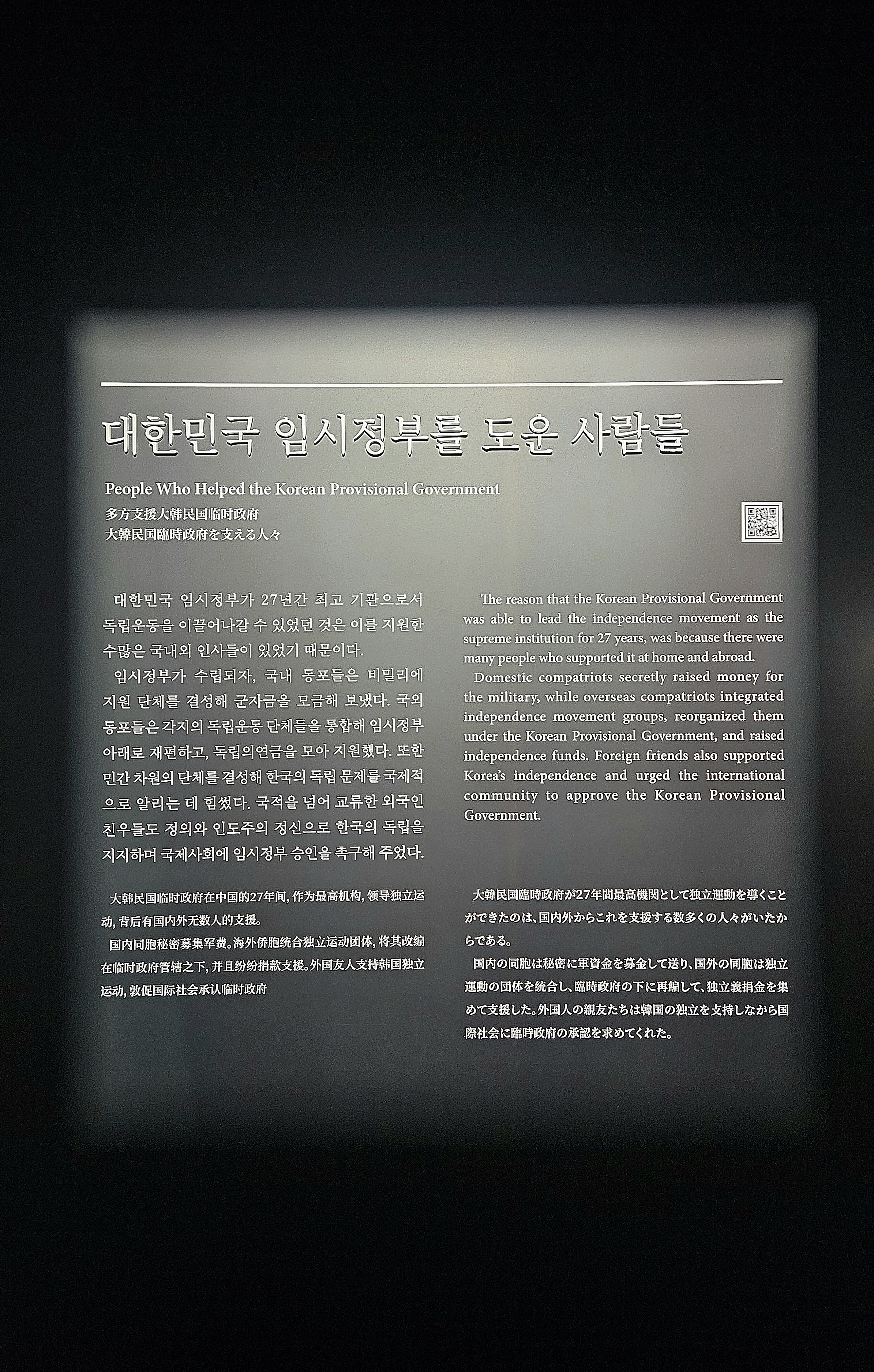 전시관에는 저희가 잘 아는 김구 선생님, 안창호, 이봉창, 윤봉길 의사에 대한 내용부터, 당시 입었던 군복, 사용한 총기들도 전시되어 있습니다. 무엇보다 광복과 독립을 위한 노력, 희생에 많은 자료들이 전시되어 있습니다.