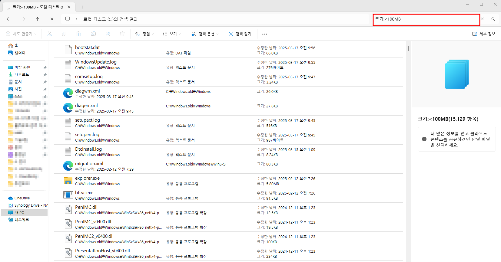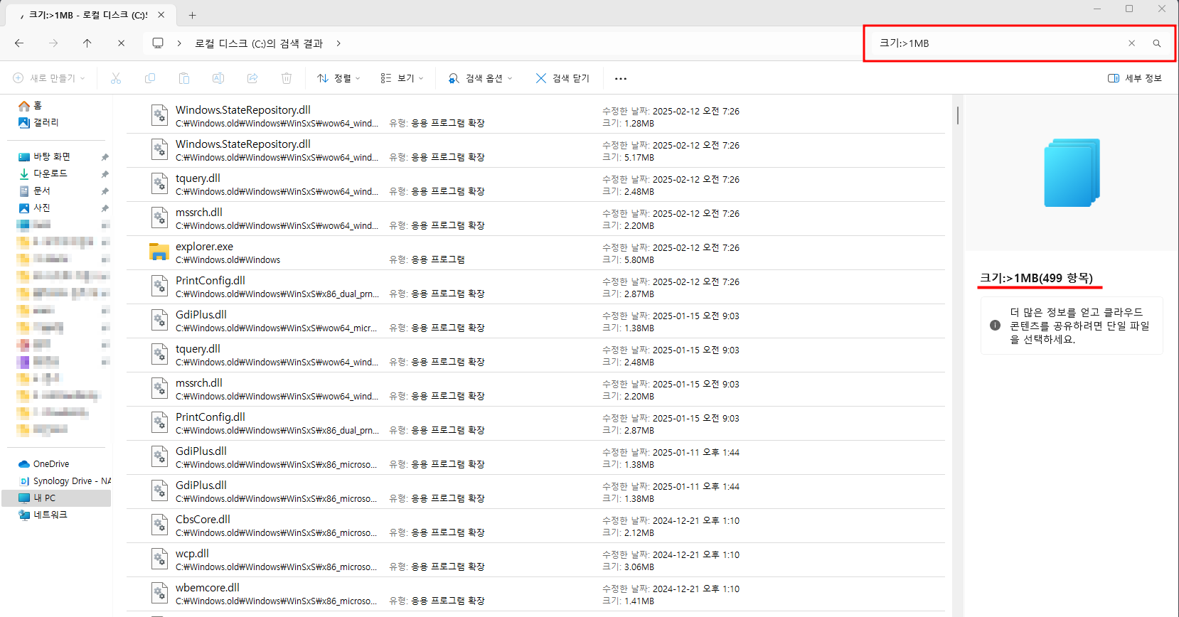 윈도우에서 파일 크기를 기준으로 검색하는 법을 알아보겠습니다.